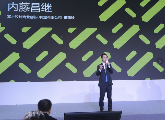 富士胶片商业创新(中国)董事长内藤昌继、中国包装联合会设计委员会秘书长李利华致辞