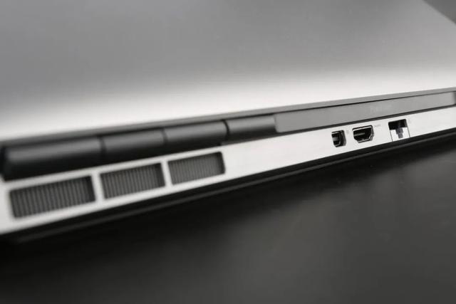 从扩展性能来看,Precision 7560的接口远比一般笔记本电脑更加丰富。在机身后端,我们可以看到HDMI 2.1高清输出口(与NVIDIA的高端显卡适配)、迷你 DisplayPort 1.4接口和一个可开合的RJ-45以太网接口(由于轻薄化设计,如今像Precision 7560这样的高性能工作站厚度也不能承载全尺寸的RJ-45口,这是整机能效提升带来的);机身右侧,配备了两个USB 3.2 A Gen 1接口(支持支持 PowerShare充电)和一个3.5mm一体化音频接口、1 个 SD 卡插槽机身左侧;机身左侧,则提供了两个USB Type-C 3.2 Gen 2的全速Thunderbolt 4.0接口,按官方资料,该机还可选配1个智能卡读卡器插槽,但插槽位并没有开孔。Precision 7560所配备的接口不仅种类和数量众多,而都均采用业界最新的接口标准,与该机的高性能硬件相匹配。
