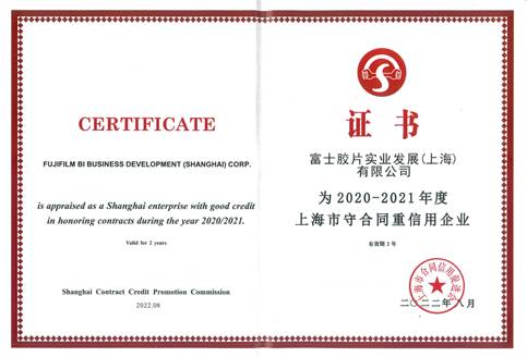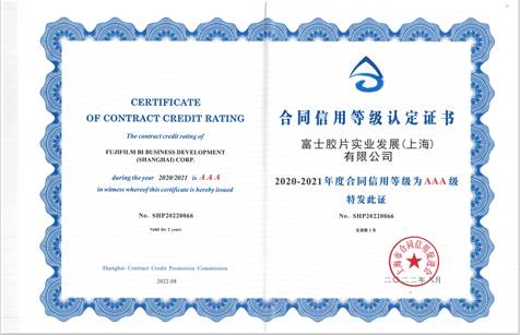 富士胶片商业创新在华企业获“上海市守合同重信用企业”AAA级荣誉