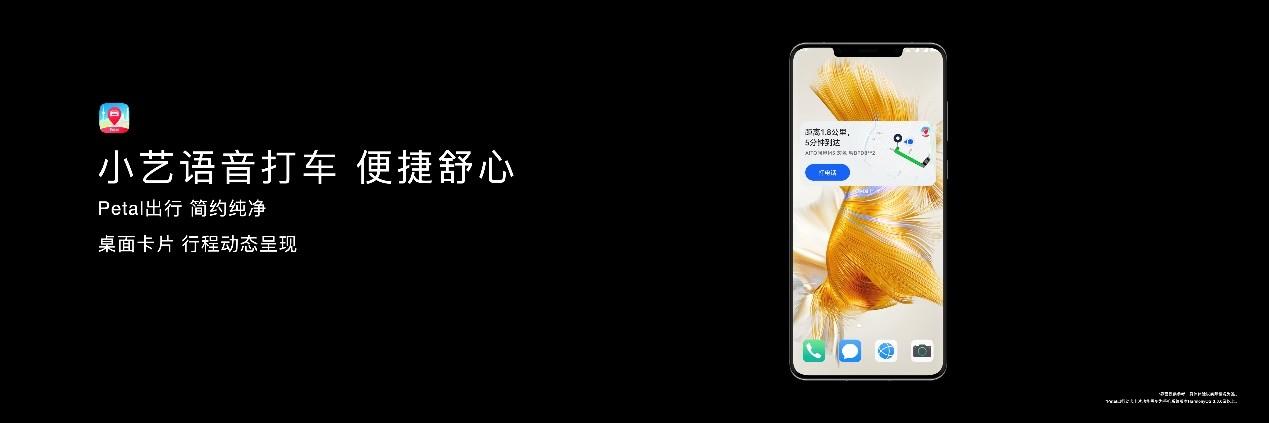HUAWEI Mate50系列首发搭载HarmonyOS 3,通过软硬件结合,将日常交互化繁为简,带来一触即达的便捷体验。用户可通过小艺智慧语音助手,语音输入“小艺小艺,我要打车”直接唤起Petal出行。目前,Petal出行公测版已随HUAWEI Mate50系列发布同步上线,联合国内优质的网约车供应商,为消费者提供品质、安全、贴心、便捷的出行服务。用户也可以通过应用市场、负一屏、智慧搜索等入口搜索“Petal 出行”,即刻体验。