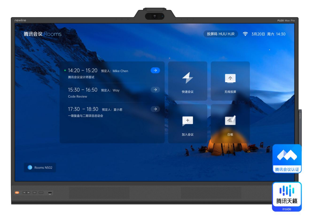 FLEX Max Pro通过了腾讯会议专业认证,并预装腾讯会议Rooms软件,无需安装应用,无需提前设置,直接扫码或输入会议号即可参与会议。使用逻辑与移动端基本一致,员工不再需要培训成本。