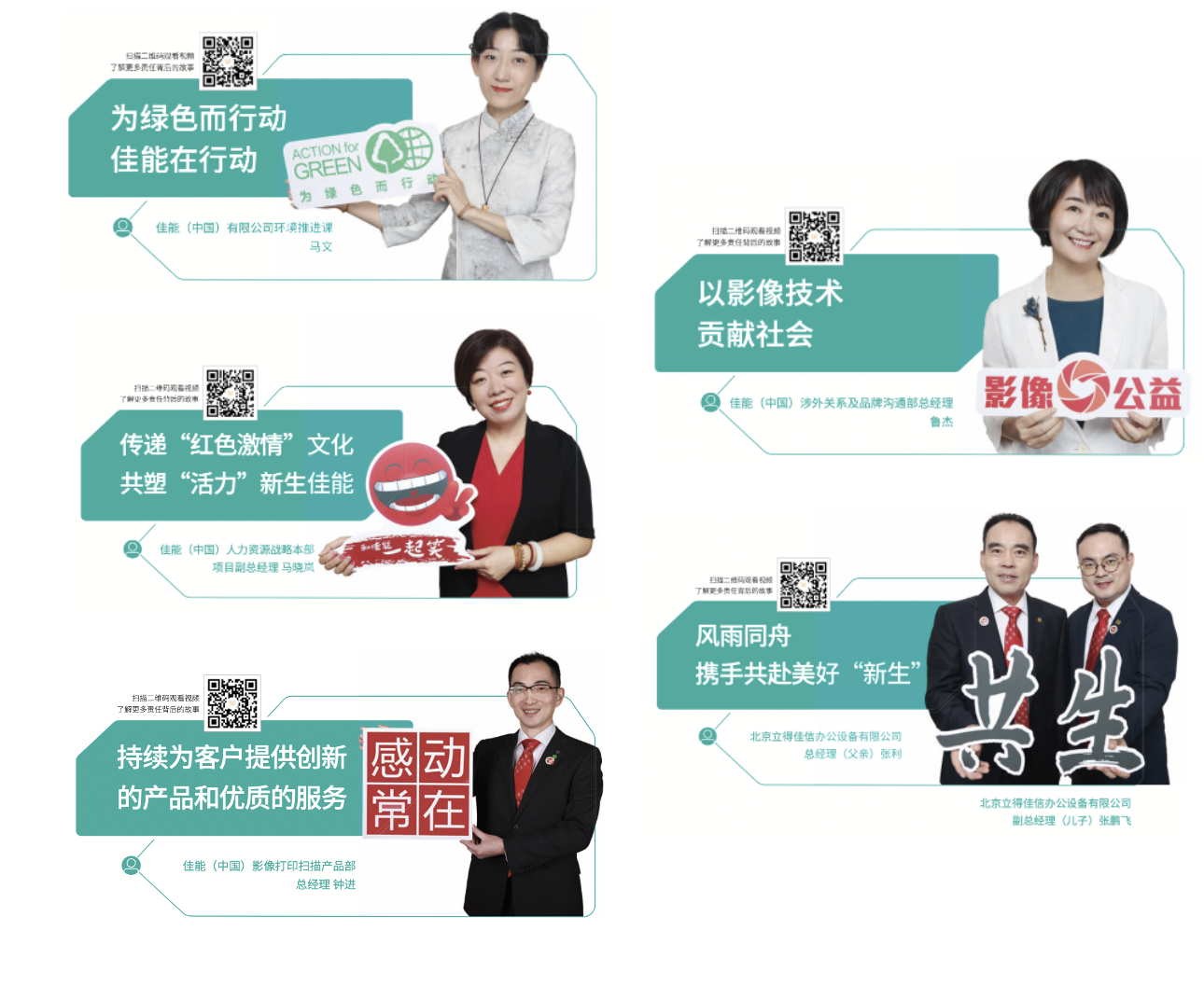 佳能人努力耕耘,将责任的种子孕育发芽,持续为利益相关方带来精彩与感动:秉承“为绿色而行动”的环境理念,佳能(中国)不断完善公司环境体系管理,开展一系列绿色行动来实现节能减排和保护生物多样性,为环境保护做出积极贡献;长期坚持以影像技术贡献社会,推动长期CSR公益战略落地,用实际行动传递正能量,贡献社会价值;“共生”、“感动常在”和“红色激情”等企业文化深入人心,唤醒员工“活力”;此外,佳能(中国)还切实践行从“共生”到“新生”的企业理念,坚持以创新产品、一流品质、卓越服务感动客户,赋能合作伙伴,共赴美好未来。
