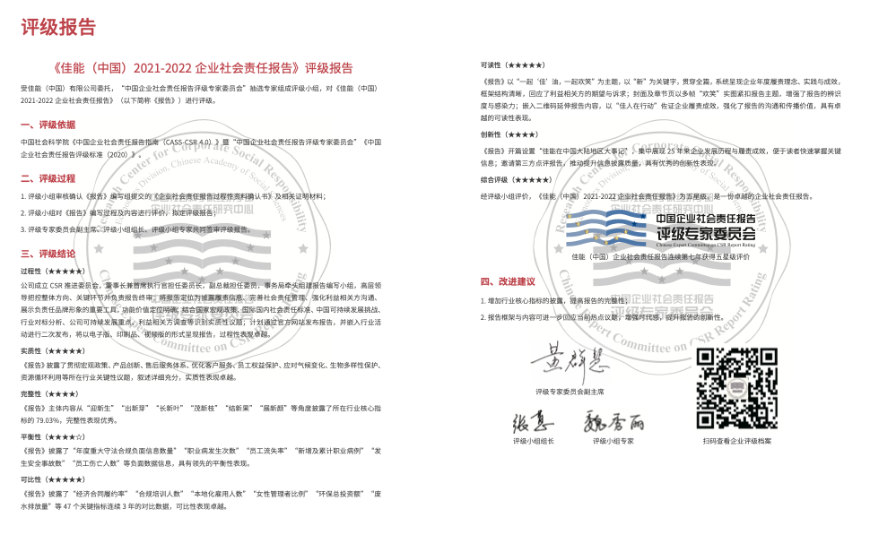 《佳能(中国)2021-2022企业社会责任报告》连续第七年获评五星评价