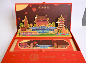 南京艺好印数字图文影像有限公司获奖作品“数码印刷纸样手册”(左)、河北雄安生彩文化传媒有限公司获奖作品“文创礼盒”(右)