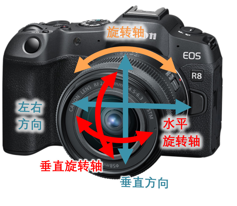 EOS R8配备短片数码防抖,使用不具备防抖功能的镜头时也能抑制抖动,实现稳定的短片拍摄。如果使用具备防抖功能的RF镜头,则短片数码防抖与镜头防抖可进行协同控制,更加有效地减轻抖动。采用短片数码防抖,不仅能进行五轴防抖,还能进行倾斜校正。通过倾斜校正,可减轻使用广角镜头自拍等时画面周围会明显出现的模糊(失真),实现影像稳定。