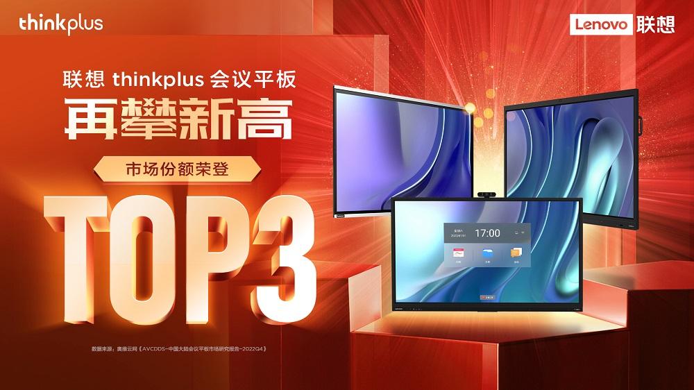 近日,据奥维云网发布的《AVCDDS-中国大陆会议平板市场研究报告-2022Q4》报告中显示,联想thinkplus会议平板市场份额达到7.8%,已跃居至中国市场第三。面对外部市场和客户需求极具变化等客观环境,thinkplus取得这份佳绩实属不易,而它对于thinkplus不仅具有里程碑意义,更标志着其在国内市场受到了广泛认可。联想中国区中小企业客户业务群 thinkplus事业部总经理 刘嘉表示:“联想thinkplus会议平板闯进市场前三,离不开每一位客户和合作伙伴的大力支持! 这将是我们努力的‘新起点’,不断优化产品体验,不断提升客户满意度,是推动thinkplus不断发展的源动力”。
