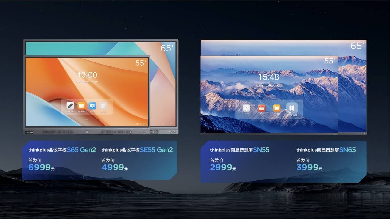 针对轻量化部署、会议室利旧改造的需求,联想thinkplus推出商显智慧屏非触控产品SN系列,包含55和65两个尺寸。