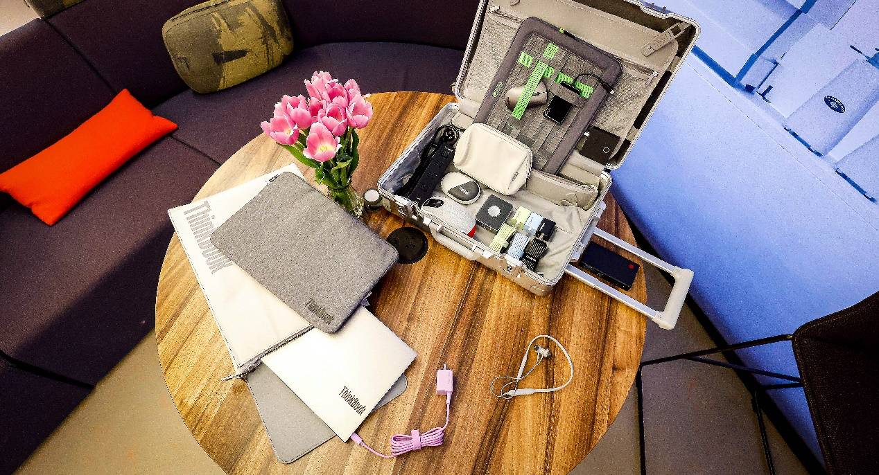 在移动场景中,由联想thinkplus金属登机箱打造的临时工作台,精心设计移动储存仓,可以轻松放入充电宝、手机、登机牌等设备。thinkplus口红电源Nano和ThinkBook随行能量卡通过闪电快充,全面兼容数码产品功率,告别在旅途过程中的电量焦虑。