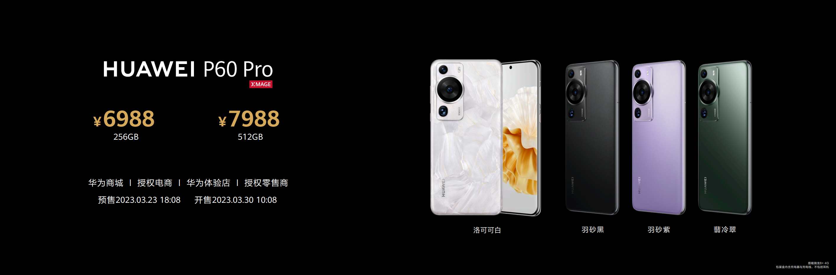 华为全新一代影像旗舰华为P60系列,将于2023年3月23日18:08开启预售,3月30日10:08正式开售,华为P60售价4488元起,华为P60 Pro售价6988元起,华为P60 Art售价8988元起。用户可登陆华为商城及各大授权电商平台或前往华为体验店、华为授权零售门店进行购买。
