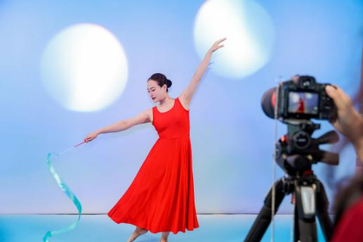 现场设置了包括足球拍摄、篮球拍摄、体操拍摄等运动题材拍摄体验区