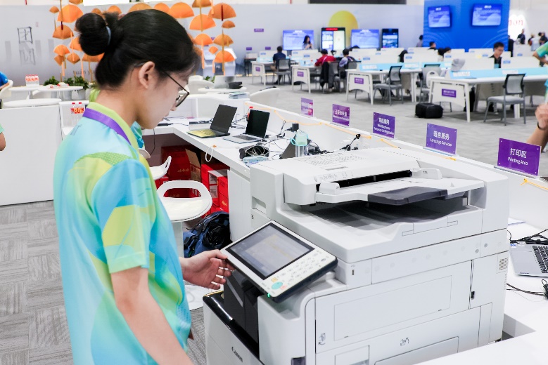 佳能为本届亚运会提供了覆盖全部赛区的打印办公设备及服务,助力提升赛事运维便利性