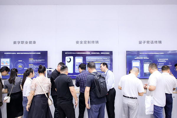此次现场展出的基于HUAWEI Mate 60系列打造的量子密话版终端,基于量子安全技术对通话内容进行加密防护,能有效提高手机在使用过程中的安全性,防止用户通话或文件传输过程中的数据泄露,同时还能为企业用户提供群聊加密、音视频通话加密、消息阅后即焚等功能,有效满足客户在通信交流、移动办公等复杂场景下对信息安全的需求。此外,依托于华为HEM解决方案平台的设备管控、内容定制能力,该定制终端还可支持业务专用APP预置、保活、防卸载,并且提供开机画面及企业logo定制,满足更多个性化需求。此外,针对通话过程中呼叫双方身份难以识别的问题,现场展台还同步展出了基于HUAWEI Mate 60系列打造的可信通话定制终端,支持全网可信身份识别,提供可信身份录入、授权、认证、展示及注销的全流程服务,企业用户可以根据不同场景选择不同身份或不带身份进行对外呼叫,使用户身份管理更加灵活。