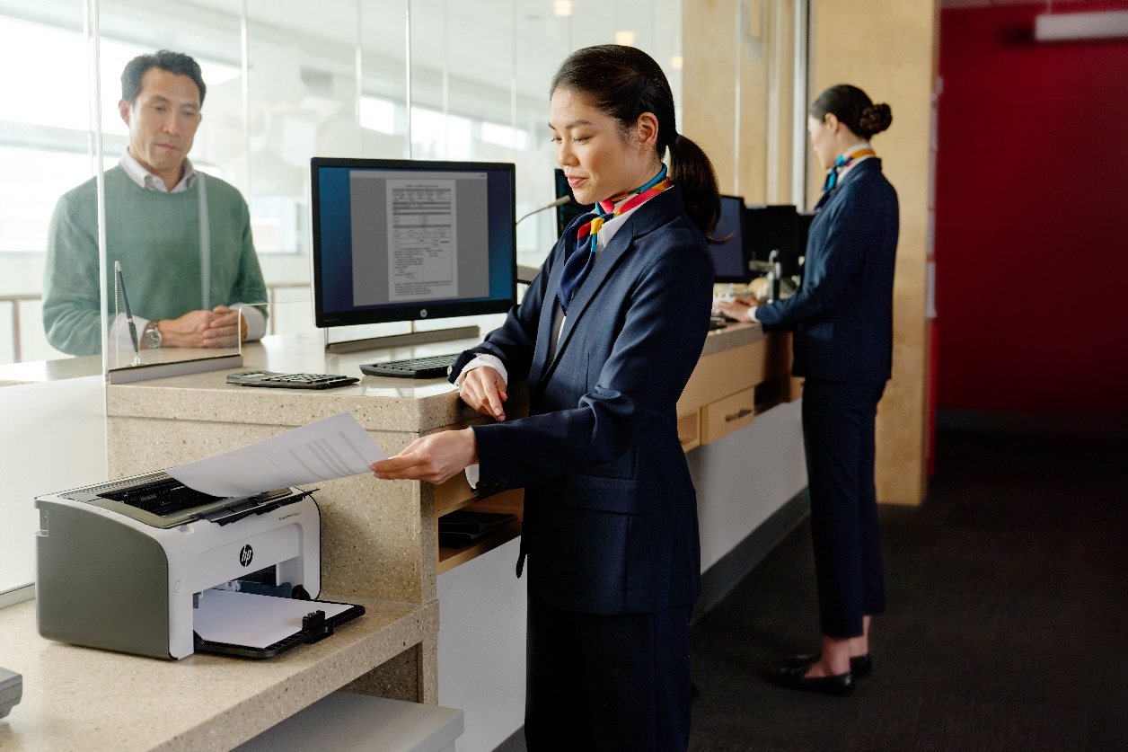 二、赋能窗口行业服务,打造稳定高效解决方案:窗口业务在各个服务领域,尤其是银行、保险、电信和医疗等行业中,都扮演者至关重要的角色。这些行业的日常运营中,窗口业务需要消耗大量的打印纸张。因此,一款结实耐用、稳定性高、打印质量卓越且操作简便的打印机,无疑是协助这些行业应对日常繁忙工作的得力助手。它能够确保窗口业务员无需因打印问题而影响业务进展,从而提升整体业务效率。针对窗口服务场景的特殊需求,惠普推出了HP LaserJet Pro系列激光打印机,为窗口服务场景提供更定制化、更互联、更可靠耐用的激光打印解决方案。