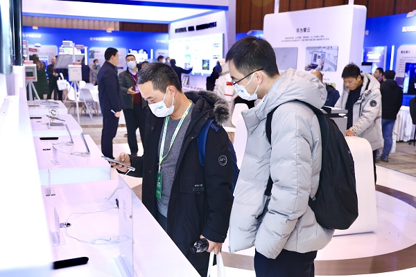 展会现场华为擎云携手合作伙伴带来了卫星通信、量子密话终端、数字职业健康、安全办公等行业方案,为企业提供端到端的保护,软硬件兼施,全面护航企业数据资产。