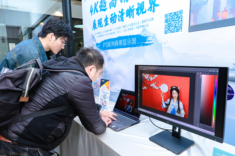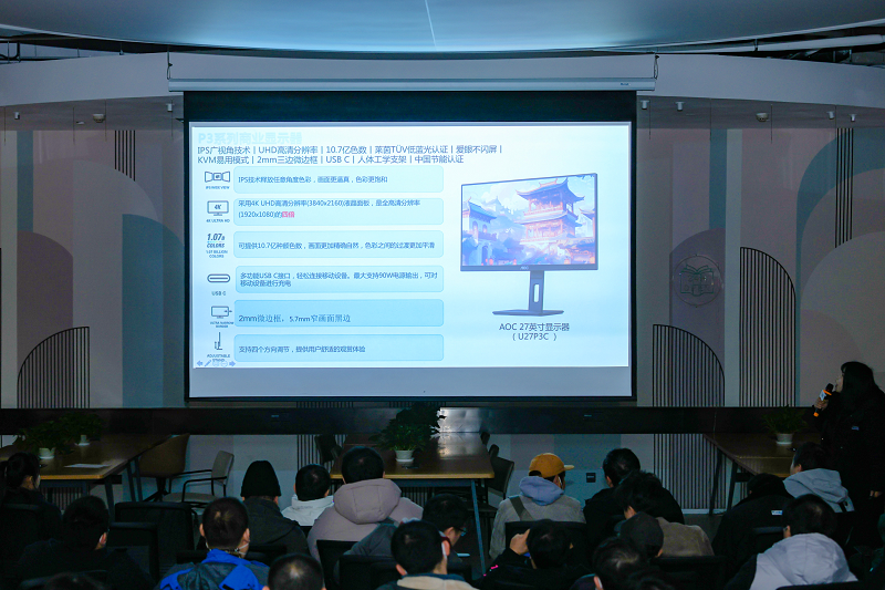 同时,讲座环节现场邀请了专业摄影大师刘顺儿妞为影像爱好者们分享摄影知识及后期处理技巧,对于AOC U27P3C显示器的优秀屏幕色彩表现,讲师表达了认可。现场摄影爱好者们也都表现出了强大的兴趣,纷纷围绕其旁体验试玩。