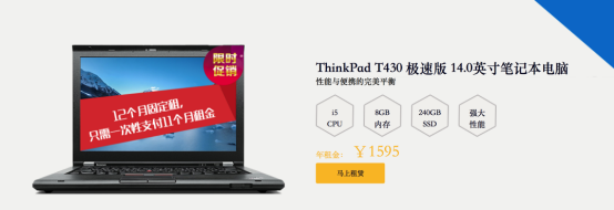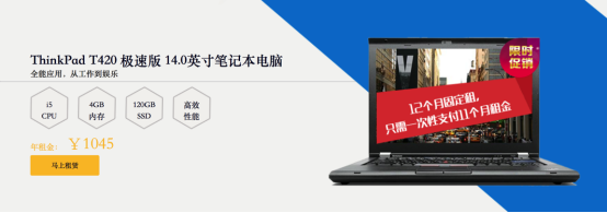 ThinkPad T420超级本,i5/8GB/240GB SSD/集显,活动期间的平均月租金133元