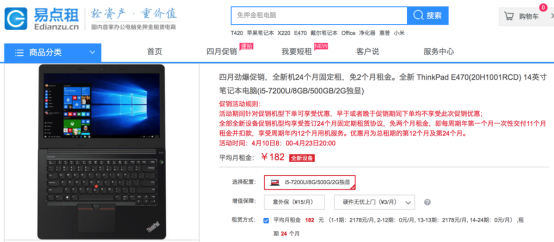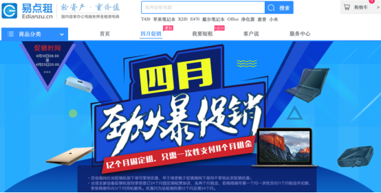 专业办公电脑免押金租赁电商平台易点租释放了一个温暖企业的消息,“四月劲爆促销,12个月固定租,只需一次性支付11个月租金”。所谓一年之计在于春,这对很多正在制定办公设备更新计划的公司来说无疑是一个利好消息。