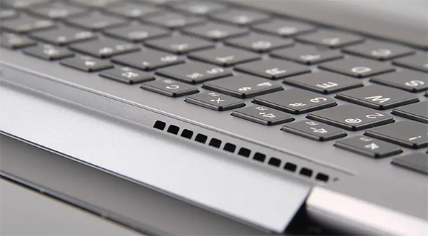 第三,V720的底部采用了横贯左右的脚垫设计,相较于传统设计极大地提高了笔记本的平衡稳定性。