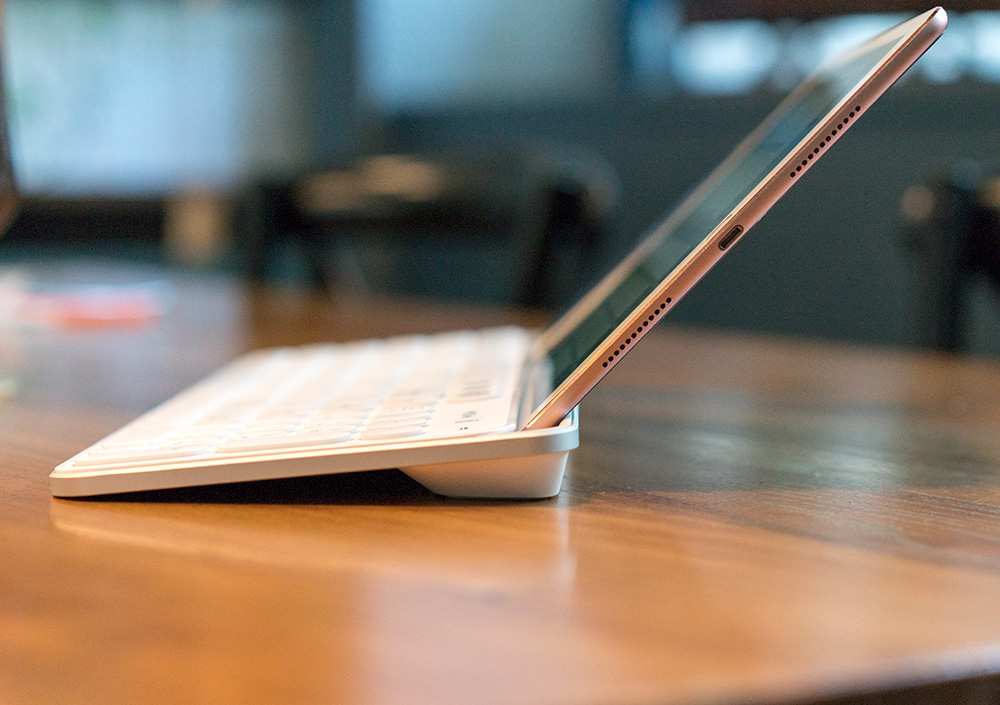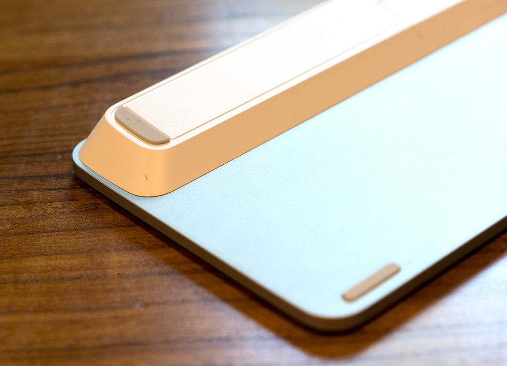 本来以为这就是款普通键盘的我,在拆开包装拿出键盘的一瞬间就被惊到了,这款键盘的份量可以用压手来形容,非常重的同时,边角的打磨处理却非常的用心。仔细想来,这款键盘的目的是要可以支撑起12.9英寸iPAD Pro的,要撬动那么大的平板,键盘自身的重量要是不够的话,就要翻车了。