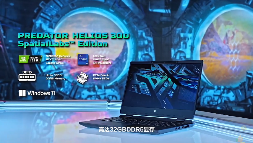 强劲的性能与顶尖的技术,构成了此次发布会的惊艳之作,掠夺者战斧300 SpatialLabs超感空间裸眼3D版电竞本,其15.6英寸UHD 2K分辨率屏幕,搭配SpatialLabs裸眼3D技术,在开启3D功能后可获得双眼2K分辨率,60Hz刷新率的显示效果,让用户完全沉浸到非同以往的立体游戏世界中,同时第12代英特尔酷睿i9处理器与英伟达RTX3080移动显卡,为其提供强悍的移动性能,并且第五代3D刀锋速冷金属风扇搭配CPU液金散热,为玩家提供持续稳定高效输出。