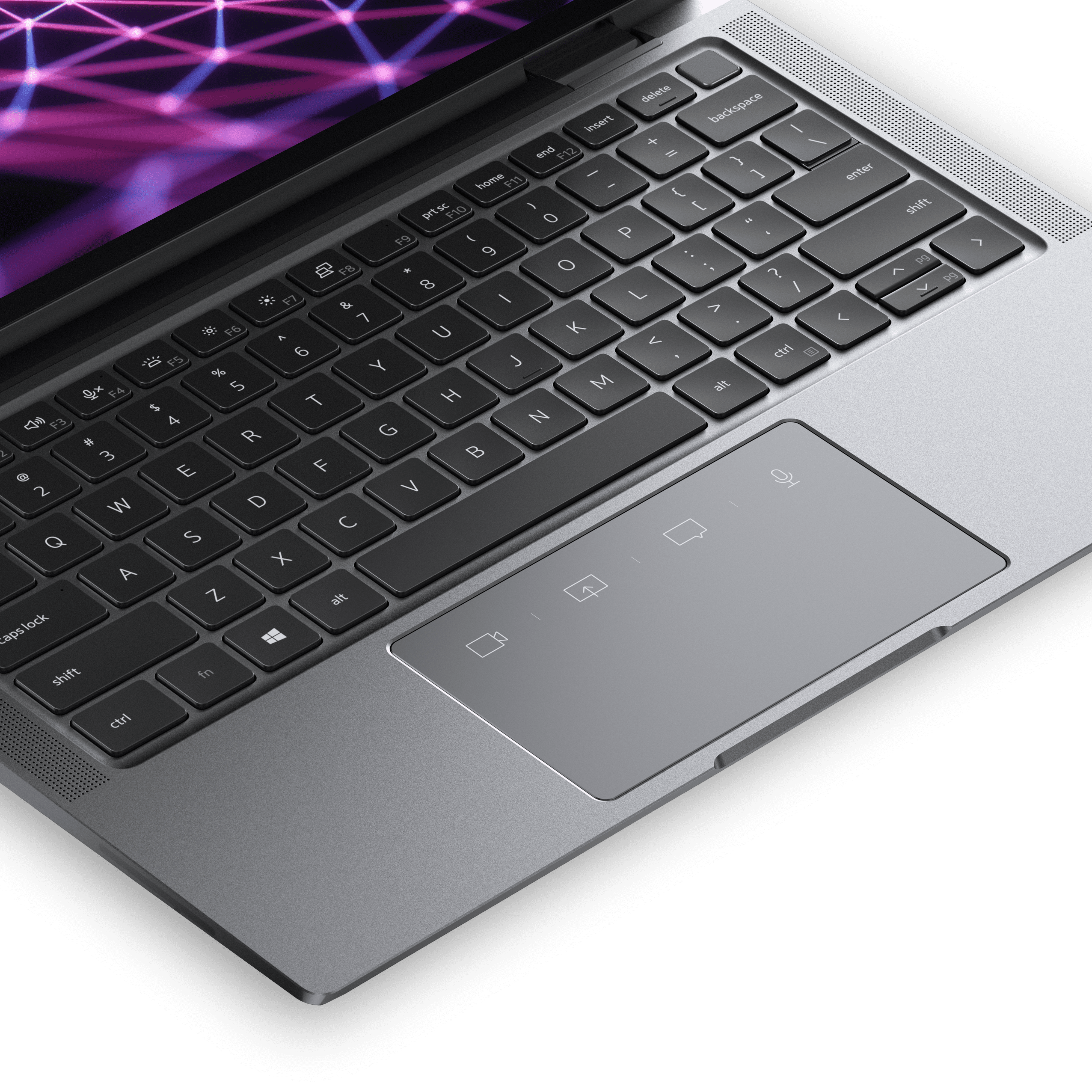 但这款笔记本的强大远不止如此。如今视频会议已经成为工作的重要部分,但频繁打开/关闭静音的操作带来了很多困扰,尤其是在打开多个窗口或选项卡时,因此更轻松地使用视频会议平台的各项功能变得十分重要。戴尔全新Latitude 9330首创性地配备了协作式触控板 ,让用户在Zoom会议中可以便捷地操控麦克风开启/取消静音、打开/关闭视频,以及屏幕共享等功能;当会议结束时,触控板上的图标就会自动消失(停止启用),变回一块完整的触控板。此外,Latitude 9330配备的FHD摄像头带有独立的RGB和红外摄像头以及智能降噪功能,让视频会议体验再升级。