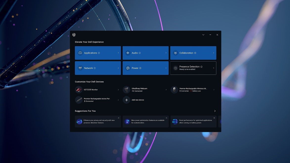 • 软件同样不容忽视。戴尔科技正在为Dell Optimizer加入智能音频、隐私、连接、协作等功能,使它可以学习并响应用户的工作方式。根据客户的反馈,需要启动和筛选的应用越少越好。因此最新版本的戴尔智能调优软件(Dell Optimizer)将智能化从PC扩展到产品生态的其他部分,通过一个界面来更加轻松地管理显示器和外设。戴尔科技还改进了PC上的智能音频功能,比如回声消除功能可以在通话中消除分散注意力的回声、语音质量监控功能会在语音质量不佳时以弹出窗口的方式通知用户。