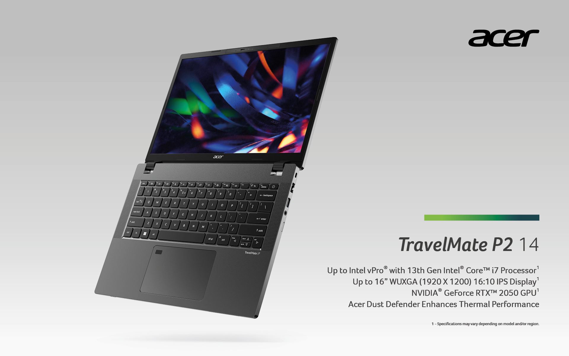 2023年4月20日在主题为“探索新平衡”的宏碁全球春季新品发布会上,宏碁发布多款全新 TravelMate航海家 商务笔记本,均搭载第13代英特尔酷睿™ vPro 、16:10 OLED高阶屏、超长续航65Wh快充电池,及使用红外线摄像头或指纹识别器安全登入的功能,展现卓越效能,满足现今混合办公需求。