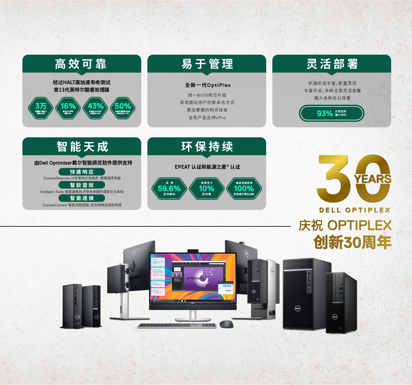 OptiPlex历经30年创新,如今,购买和管理性能可靠的台式机变得前所未有地简单