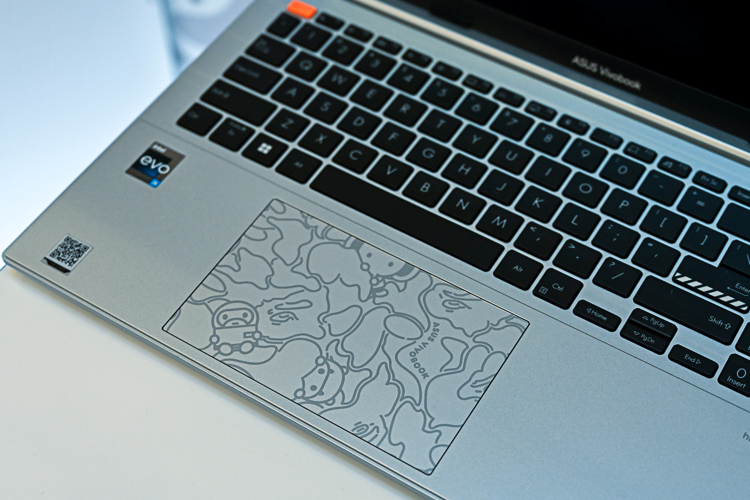 打开电脑后,可以看到触控板上也用上了这个定制迷彩图案,并且掌托区域甚至机身D面也同样加入了BAPE相关元素。多个细节中充分融入联名元素,整体设计非常用心有诚意。