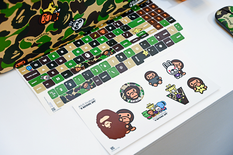 只有这些就够了吗?不!华硕还非常贴心地赠送了以BABY MILO?为主要元素的DIY贴纸,包括全键盘贴纸,可以让你的笔记本方位凸显BAPE潮牌元素,彰显个性与众不同。