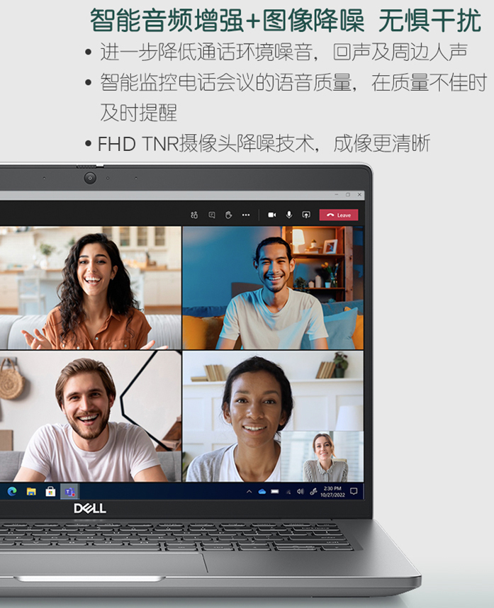 如今视频会议已成办公日常,所以Latitude 5X40大幅优化视频会议体验:升级到FHD规格的TNR降噪摄像头,即便是偏暗的室内光线环境,也能提供出色的画质,能够在视频会议中呈现更加清晰、干净的画面。结合麦克风降噪和人声降噪功能(指给对方的声音降噪),可打造更加舒适、愉悦的视频通话体验。