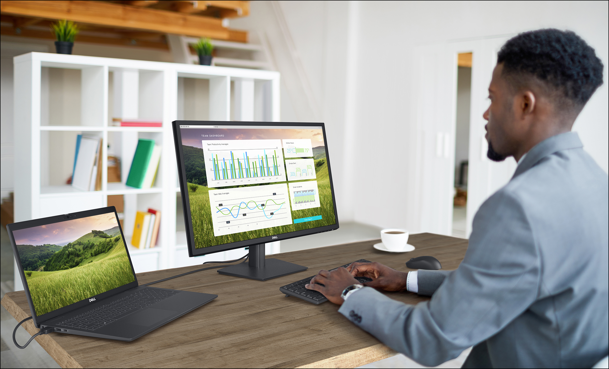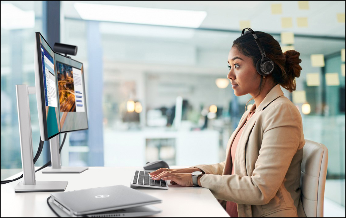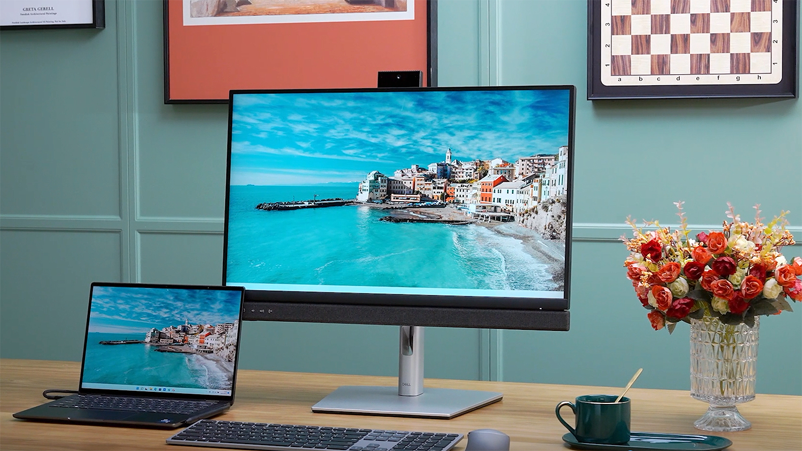 如,借助支持Type-C信号输入和反向供电功能(给笔记本充电)的大屏显示器,仅用一根线就能实现这种“1+1扩展”,再配合戴尔无线键鼠,可打造整洁、愉悦、舒适的扩展体验。另外注意,如今不少戴尔显示器带有高清摄像头、高素质麦克风,以及高功率扬声器,甚至部分款型还带有近距离传感器,可无缝移植笔记本上的智慧功能体验。