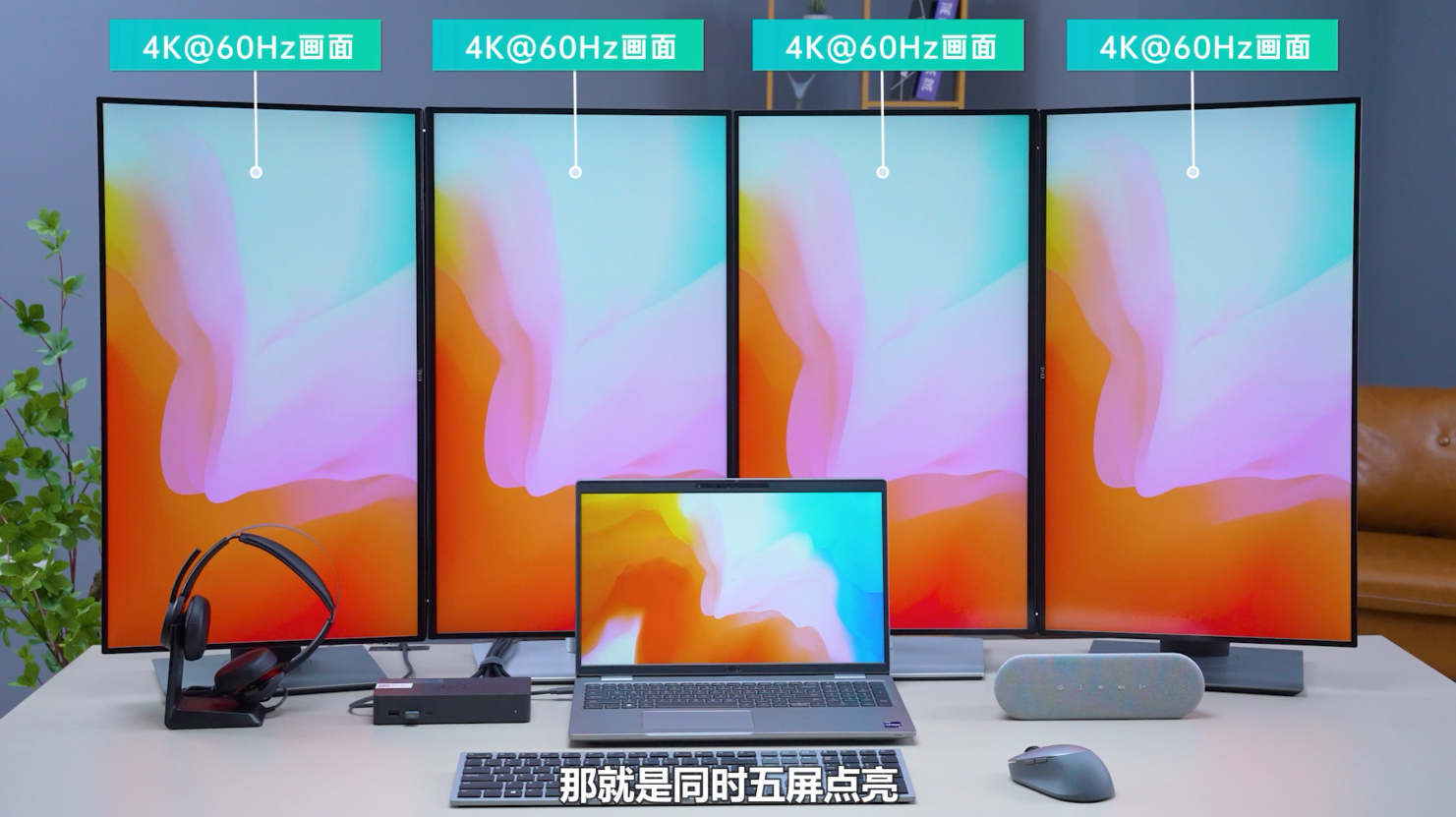 ▲实际上,借助戴尔自家的UD22扩展坞,Latitude 5X40甚至可轻松实现4个4K屏的输出,加上自身的屏幕,实现共5屏点亮的超级输出!即便不借助扩展坞,也能轻松扩展多至3个4K屏。
