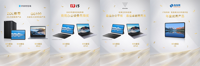 华为擎云 C7作为专为大企业及政府客户打造的新一代高性能商务旗舰平板,搭载144Hz高刷全面屏和HarmonyOS自主操作系统,可以与笔记本、打印机等终端组成“超级终端”,带来全场景互联的智慧办公新体验;同时具备PC级专业办公能力,使得华为擎云 C7在面对复杂多元的办公环境和需求时也能轻松应对。该产品在年终产品评选中同样取得了诸多优异成绩,包括荣获IT之家2023年度科技趋势榜“商用办公设备先锋奖”,并入选机锋王炸科技榜“最佳办公平板”和中关村在线“ZOL年度推荐产品”。