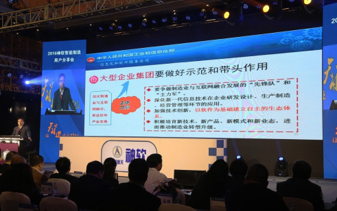 10月21日,2016神软智能制造用户分享会在北京隆重召开。此次会议以“让智造提升价值”为主题,重点展示了神软公司智能制造整体解决方案,预发布了神软智能制造业务平台,并介绍了神软公司在智能制造方面的思考及相关工作部署。大会期间,还举行了神软智能制造生态体系启动仪式,标志着“神软公司-业务合作伙伴-用户”三位一体的智能制造生态圈正式启动。中国航天科技集团公司吴燕生总经理、工业和信息化部信息化和软件服务业司谢少锋司长等领导出席了会议并发表讲话。