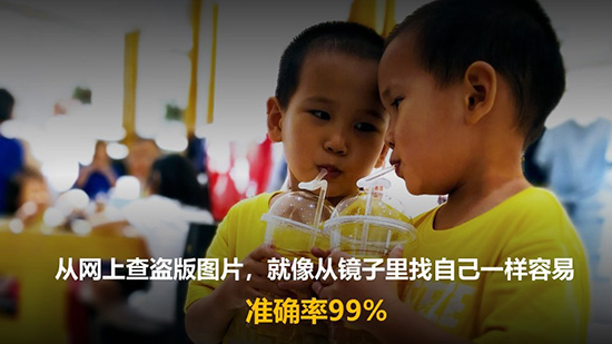 一是图片盗版。这个是中国图库网的一个合作案例。过去追责图片盗版是非常头痛的难题,现在通过以图搜图技术,可以极大的改进版权图片追责方式。我们利用5000张版权图片,针对常见的8种盗版模式,通过视觉处理算法和深度学习进行大量训练,从4200万网络图片中共找出8万多张侵权图片,准确率达99%,这个防盗版检查就是部署在华为公有云上,可以说,有了AI,从网上查盗版图片,就像从镜子里找自己一样容易。