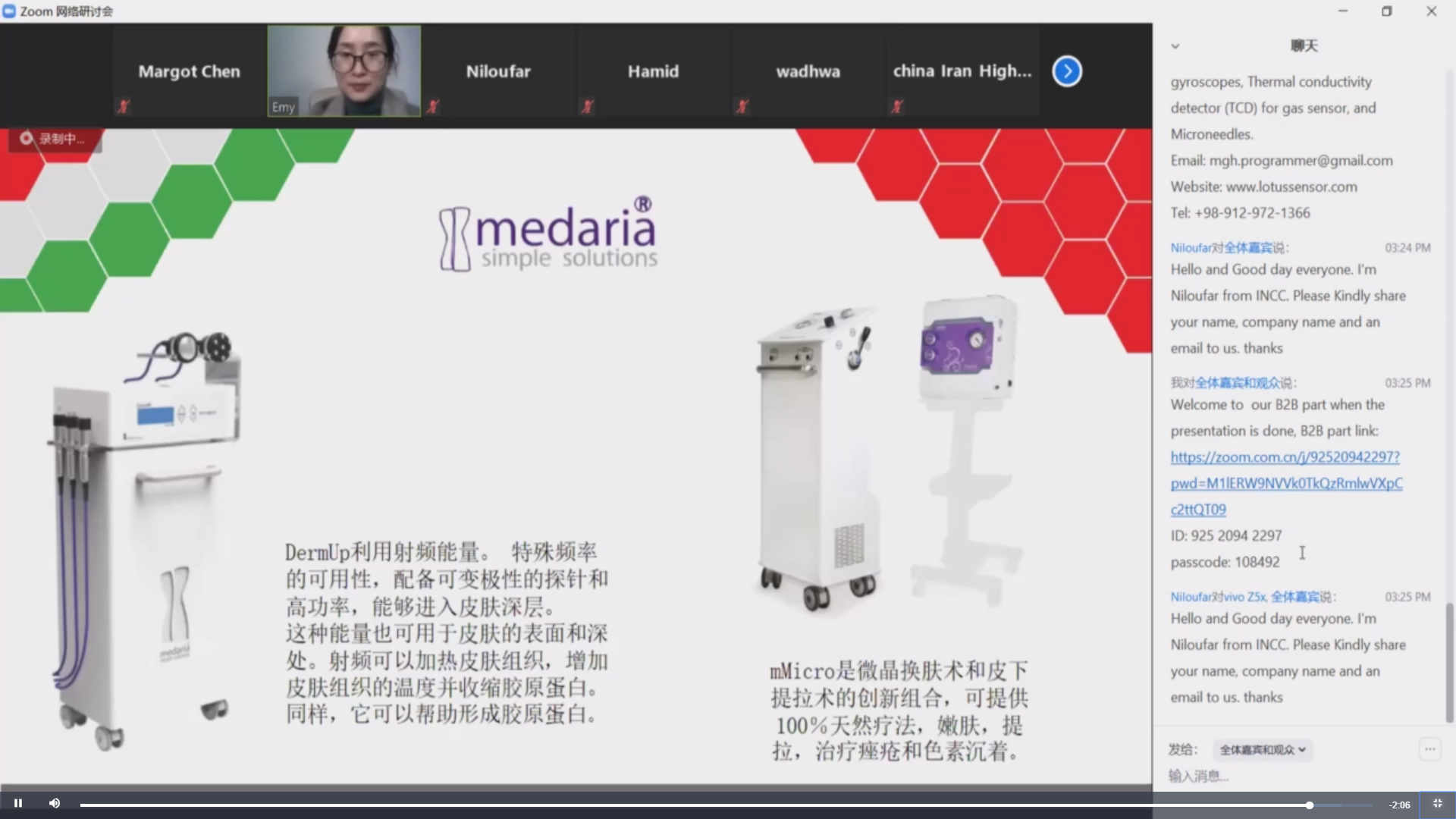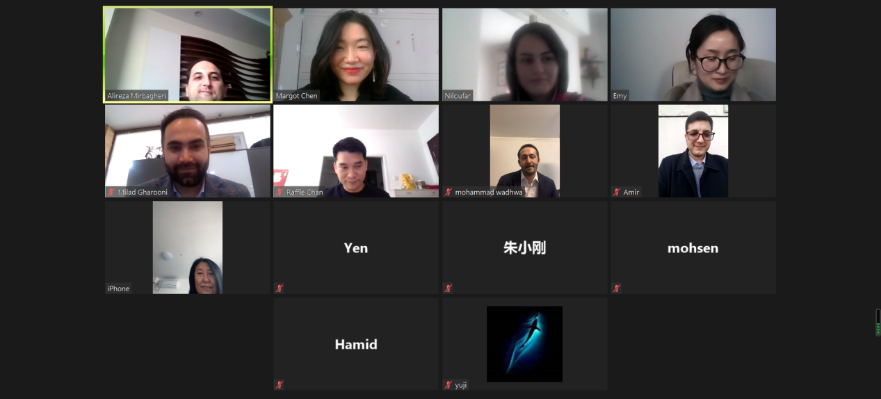 该场活动共分为两轮,首先由INCC副主任郑女士在线推介了五家伊朗优秀初创企业以及他们的代表产品;接下来的B2B洽谈环节中,依次安排了五轮一对一中伊企业对接。来自国内外的60多位相关领域对口公司、协会、机构以及行业代表参与了本次活动。
