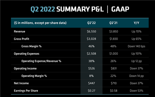 AMD公布二季度财报:营收65.5亿美元、净利润4.47亿美元