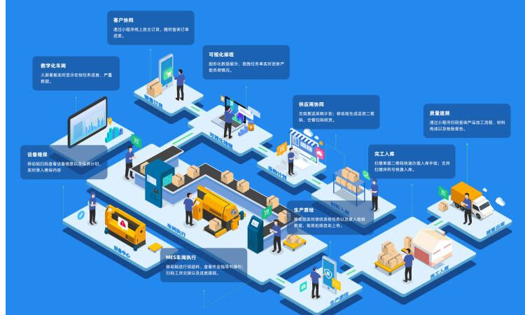 数字化车间一般包含工艺文件远程下发、生产数据自动采集、生产过程可视化、设备管理信息化等几个要素。