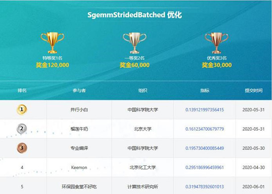 经过两个多月的激烈鏖战,日前,中国科学院“先导杯”并行计算应用大奖赛组委会正式揭晓五月榜单,并对本赛段各个赛道前三名团队及个人,颁发个性大奖。