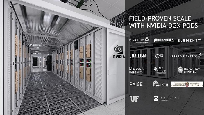 图注:NVIDIA DGX SuperPOD系统为大规模AI训练树立全新里程碑。