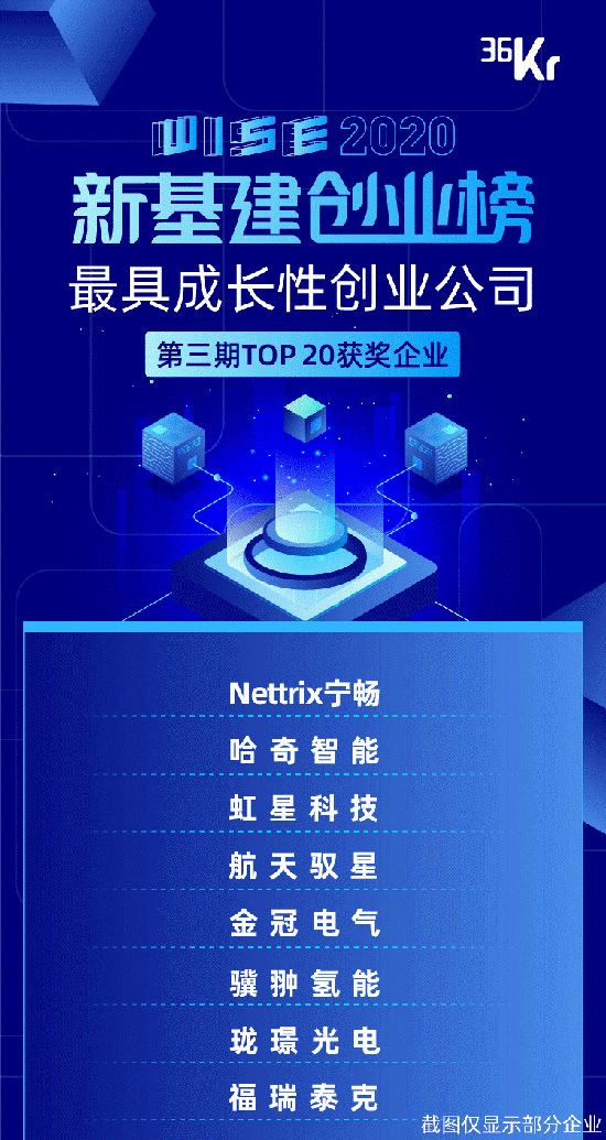 “新基建创业榜”是36氪从资本价值力、研发与创新力、产业影响力三个维度出发,经公开渠道报名、市场调研、分析师推荐等环节评选出,展现出这些未来产业“明星”的潜力和价值。该榜单2020年总计发布三期,有60家企业上榜。