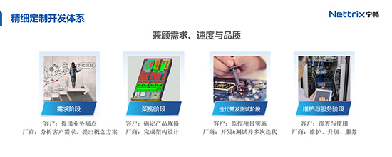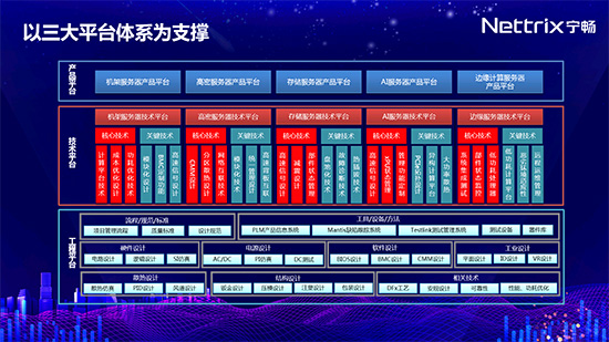 宁畅介绍“精细定制开发体系”建立的背后,是宁畅所具备的完善产品、技术与工程技术平台。技术层面,宁畅工程师通过模块化、盘池化、功耗优化、部件状态管理、高速信号设计、系统集成测试、恶劣环境适应等技术模组,保障不同系列产品以及不同运维标准、使用场景下用户所定制服务器的稳定高效。