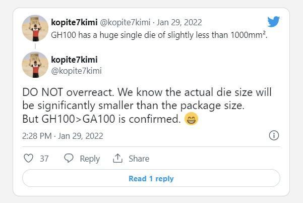 根据@kopite7kimi的最新爆料,英伟达即将推出的名为GH100的HPC加速器将采用略小于1000mm2的芯片尺寸。这意味着GPU可能比基于Ampere架构的GA100大20%。