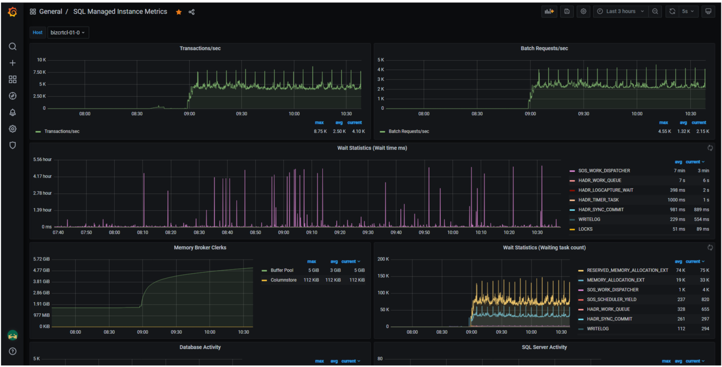 这些Kubernetes框架现在变得流行,正被用户快速采用。Microsoft SQL Server大数据群集和他们最新推出的Azure Arc-enabled SQL管理实例也都可以在Grafana中显示SQL统计数据。这使得所有关键的SQL指标都可以在单一管理面板中查看。