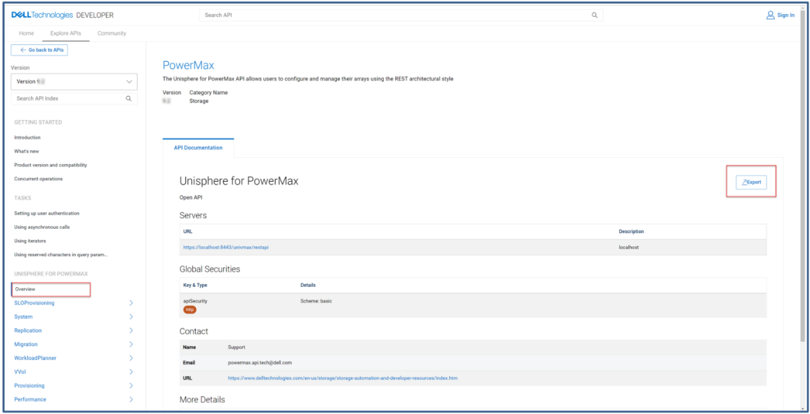 所有Dell API的文档均可点击链接查看。PowerMax文档有一个“新增功能”部分,其中包含指向支持页面上最新REST API更改日志的链接。REST API文档直接链接到了UI Help,更易于查找。