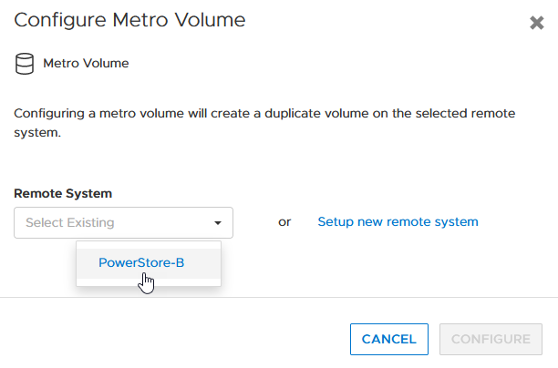 volume -name MetroVolume-Uniform configure_metro -remote_system_name PowerStore-B