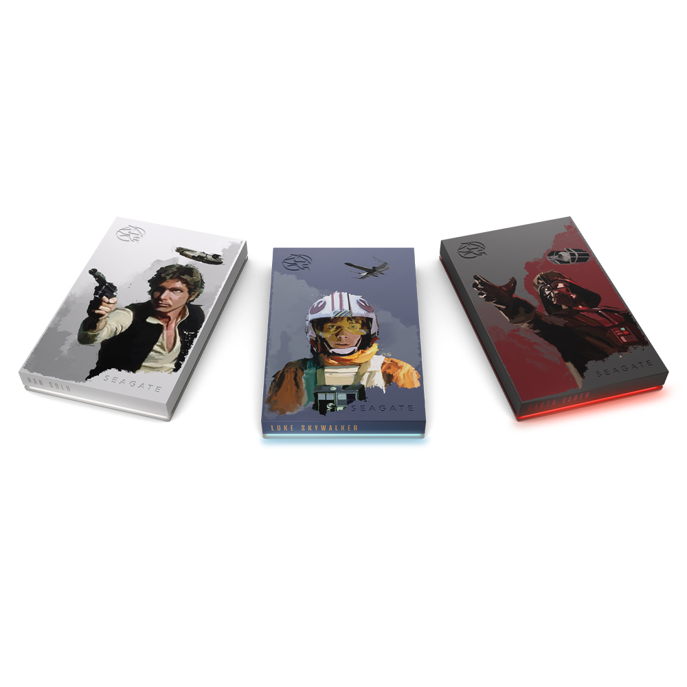 全新特别版希捷酷玩外置硬盘以三种独特的美学彰显三位著名人物:卢克·天行者的勇气、达斯·维德的原始力量、银河系知名走私犯汉·索洛的自信。这些硬盘可自定义RGB LED灯效,且每款都配有出厂默认的角色灯效:强烈的蓝色灯效代表卢克·天行者,醒目的红色灯效代表达斯·维德,而怀旧的白色灯效则代表汉·索洛,令人不禁想起他的千年隼号。借助三款硬盘内置的自定义灯效,星战粉和游戏玩家在家中就可以唤醒神秘的原力。
