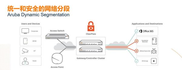 面对需要接入的各种IOT设备,Aruba CX系列交换机采用Dynamic Segmentation动态分段隔离技术,在有线和无线网络中自动实施一致的策略,以保持任何用户或设备的流量独立且安全,同时根据业务不同,实现最大化的分段隔离。通过Aruba认证平台 ClearPass实现安全准入,可对网络用户进行集中管控,ClearPass提供对角色的定义,交换基础设施则负责实施基于这些角色的策略,通过Aruba移动控制器根据设置的策略为每个设备动态构建隧道,并在网络中端到端应用,无需进行大量手动配置,从而实现了无线和有线接入策略的一体化。