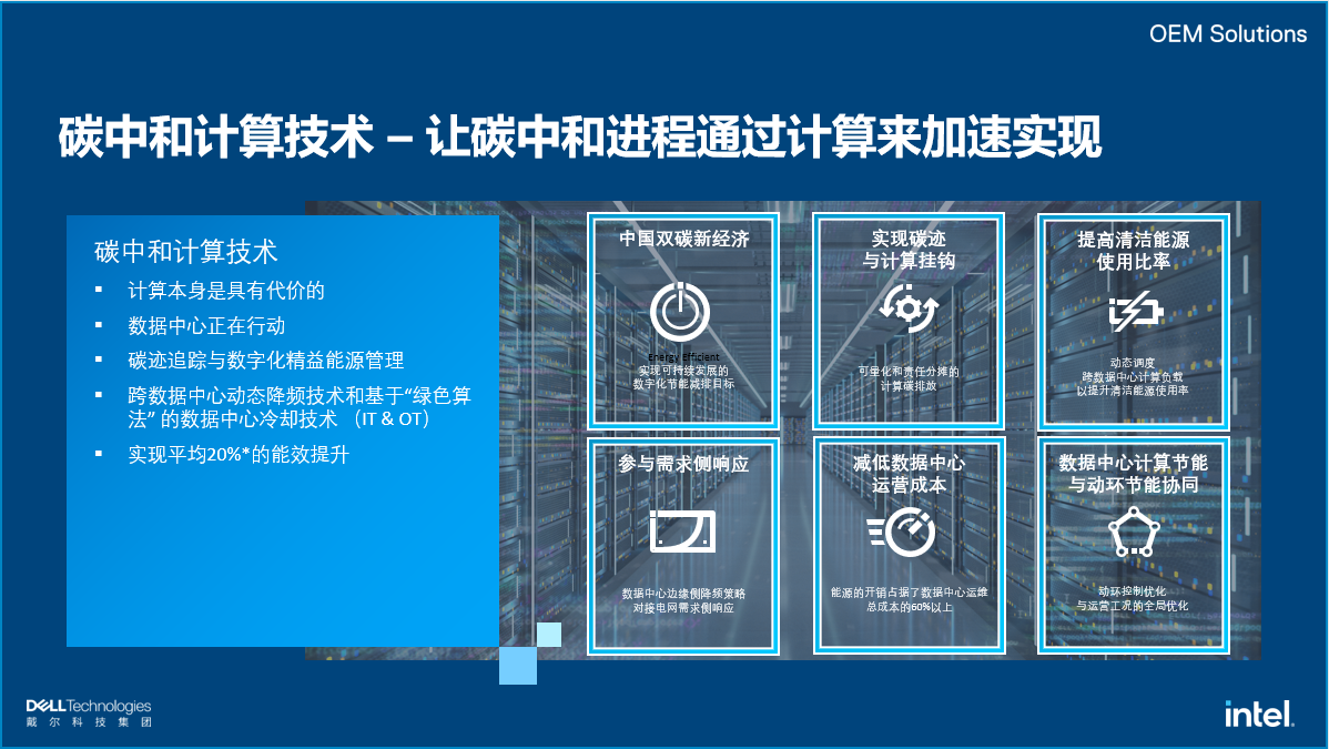 来自英特尔网络与边缘事业部的战略市场高级经理朱晟伟分享了如何利用实时碳中和计算技术,实现数据中心动环深度闭环优化。